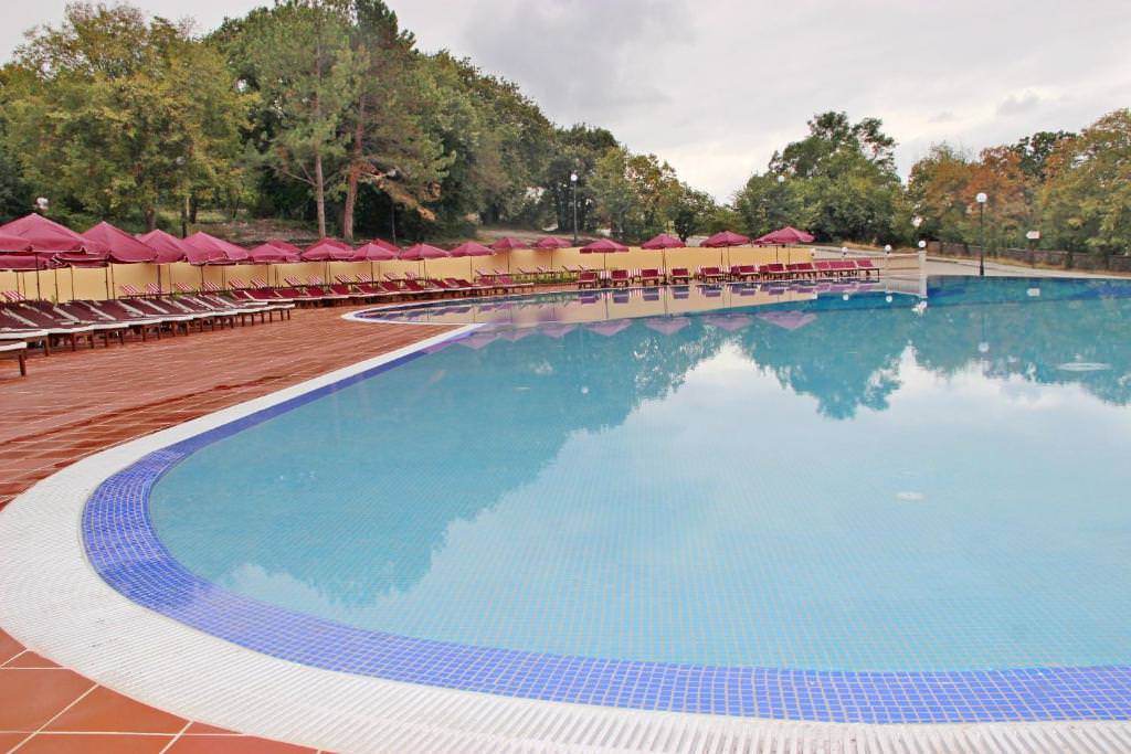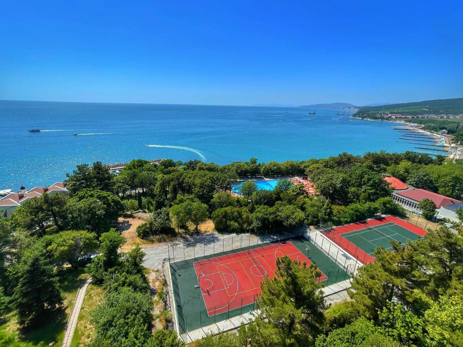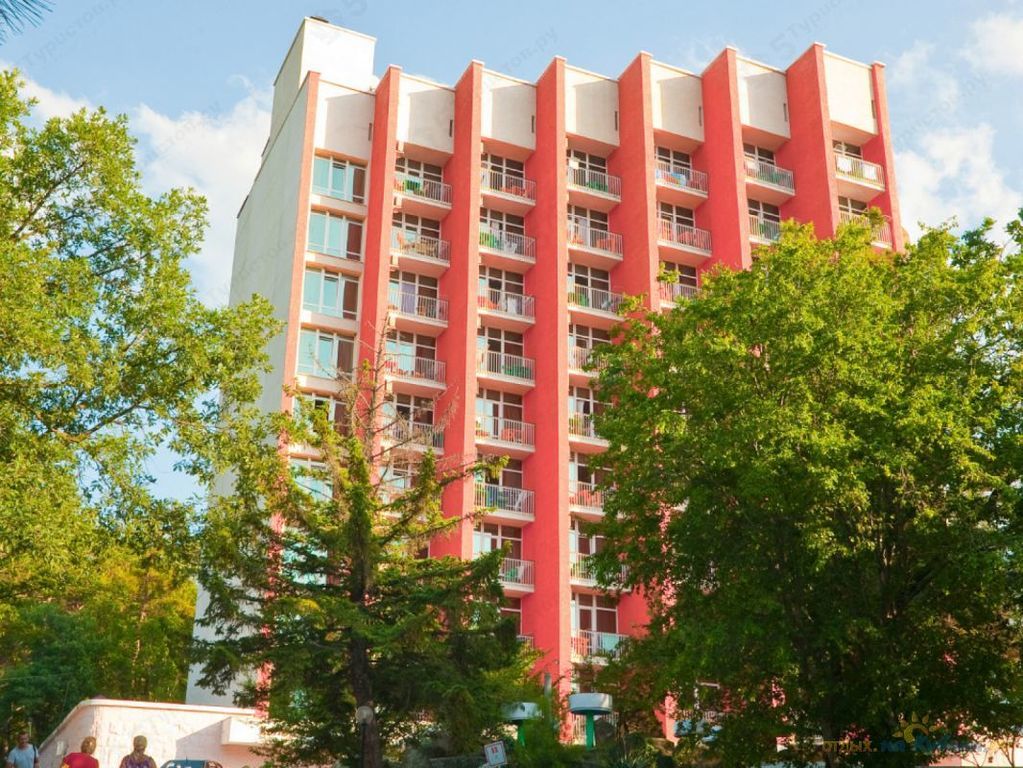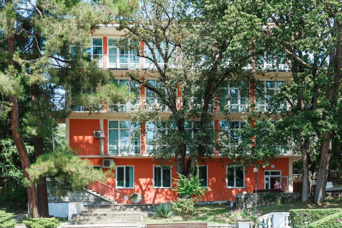 На территории расположены три корпуса на 280 номеров с единовременной вместимостью свыше 560 человек. К вашим услугам категории номеров от стандартов до категории люкс с панорамным видом на море и сосновый бор, парковую зону, оздоровительный центр, два бассейна с подогреваемой водой, ресторан со шведской линией, реликтовый парк, оборудованная пляжная зона протяженностью 200 метров, киноконцертный зал/ конференц-зал на 260 мест, студия детского творчества и детский городок с качелями и горками, спортивные и игровые площадки.