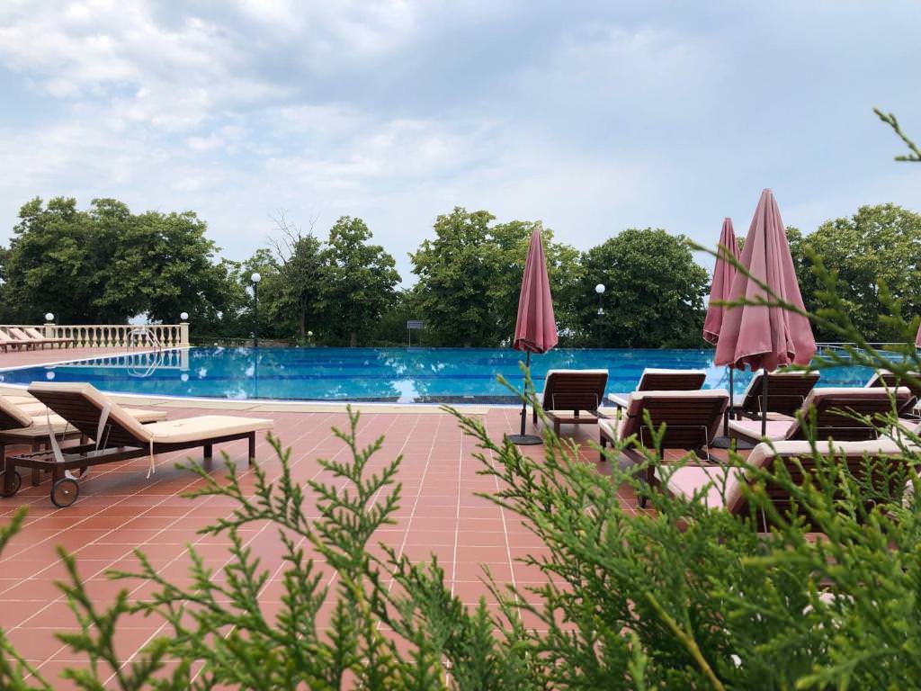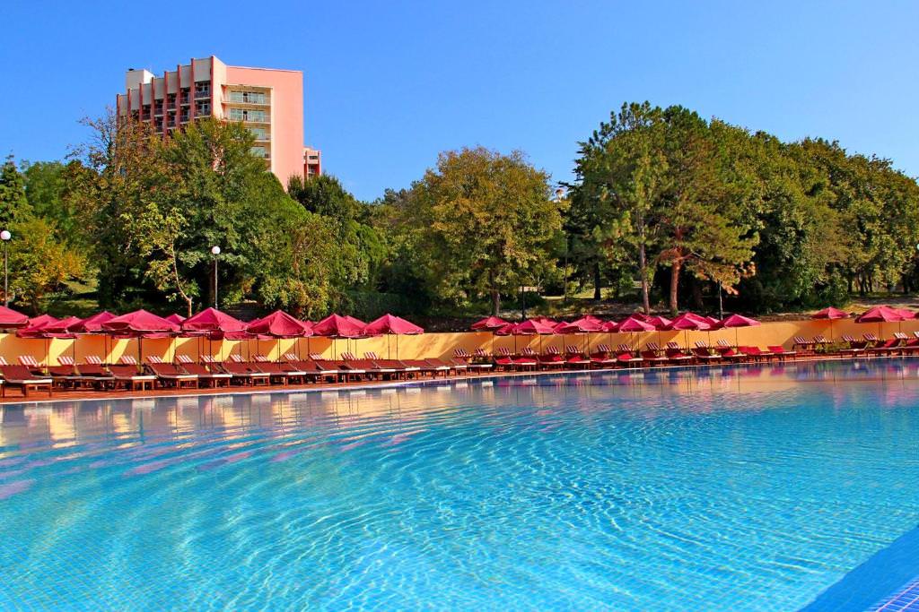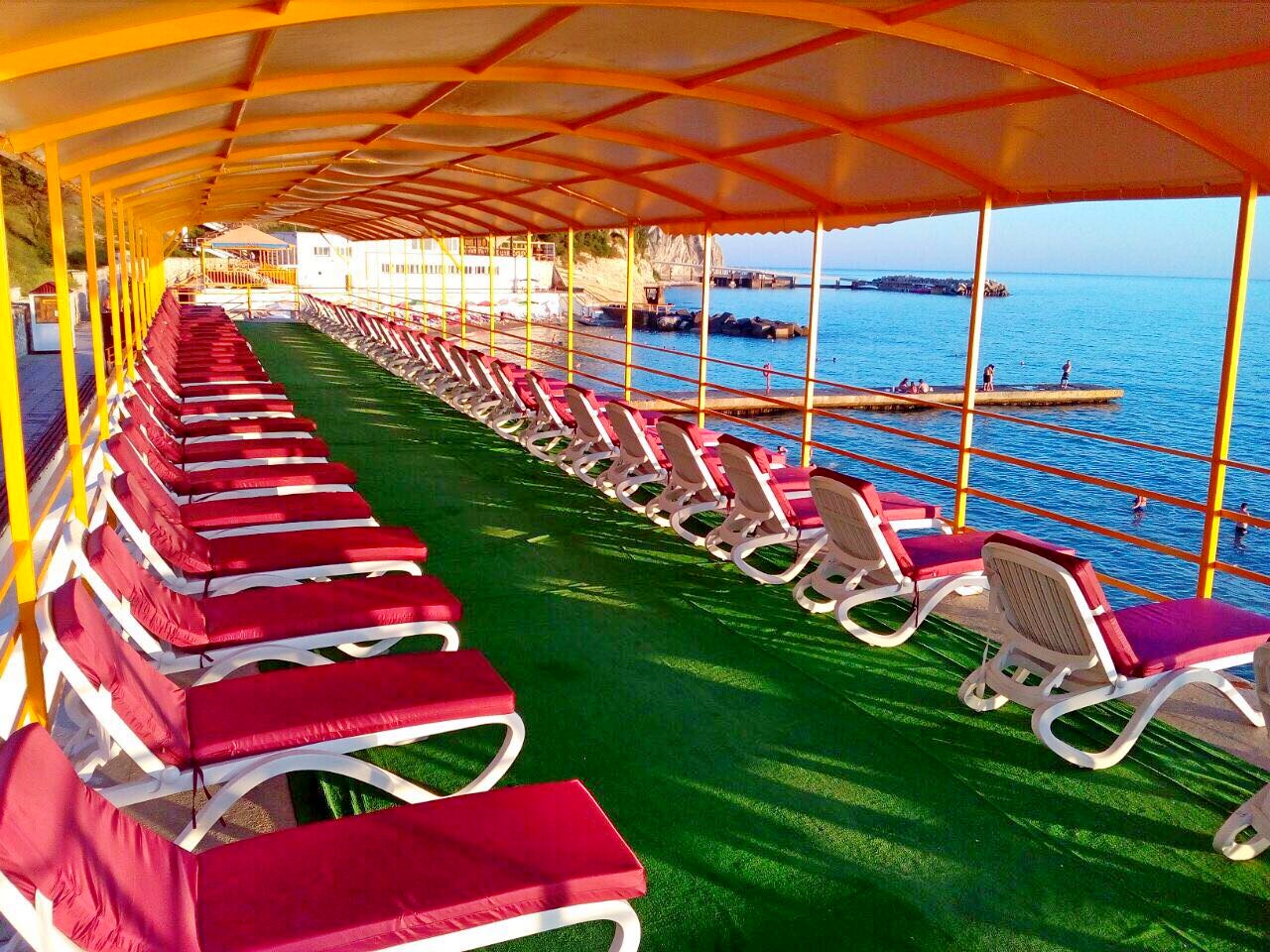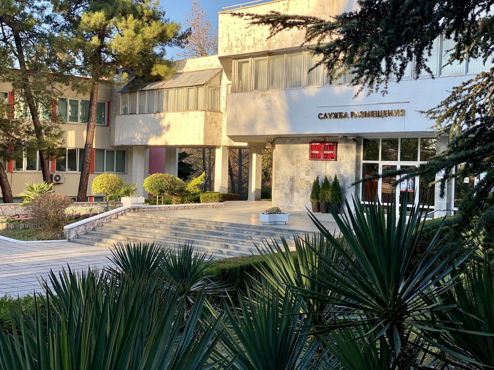 На территории расположены три корпуса на 280 номеров с единовременной вместимостью свыше 560 человек. К вашим услугам категории номеров от стандартов до категории люкс с панорамным видом на море и сосновый бор, парковую зону, оздоровительный центр, два бассейна с подогреваемой водой, ресторан со шведской линией, реликтовый парк, оборудованная пляжная зона протяженностью 200 метров, киноконцертный зал/ конференц-зал на 260 мест, студия детского творчества и детский городок с качелями и горками, спортивные и игровые площадки.