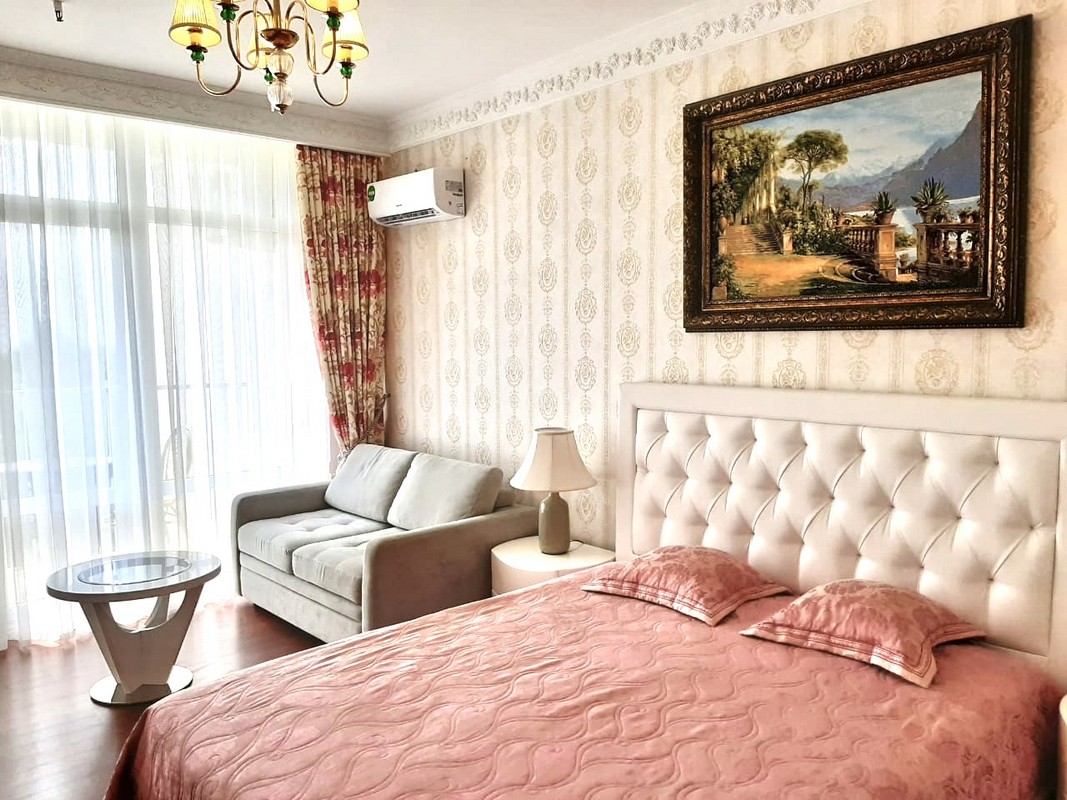 Площадь номера - 27 кв.м. 2 осн. места. 1 доп. место. Балкон. Мебель: вешалка, зеркало, кресло-кровать (или диван), кровати односпальные /одна двуспальная кровать, прикроватные тумбочки, столик журнальный, стул, шкаф. Оборудование: сплит-система, телевизор, телефон, холодильник, чайный набор посуды, электрочайник. Санузел: с ванной/душем, туалетные принадлежности, фен. Сервис: Wi-Fi бесплатно, смена полотенец, смена постельного белья, уборка номера.
